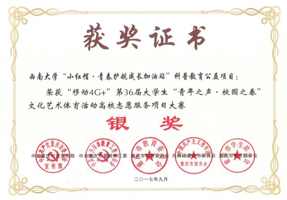“红帽子”青年志愿者服务队本着“奉献、友爱、互助、进步”的志愿者精神,广泛地组织开展和参与各种志愿者活动,已成为全校大学生助人为乐、扶危济贫、无私奉献的志愿者的光辉榜样,成为学校精神文明建设的一支生力军,成为北碚区精神文明建设的一道亮丽的风景线。
