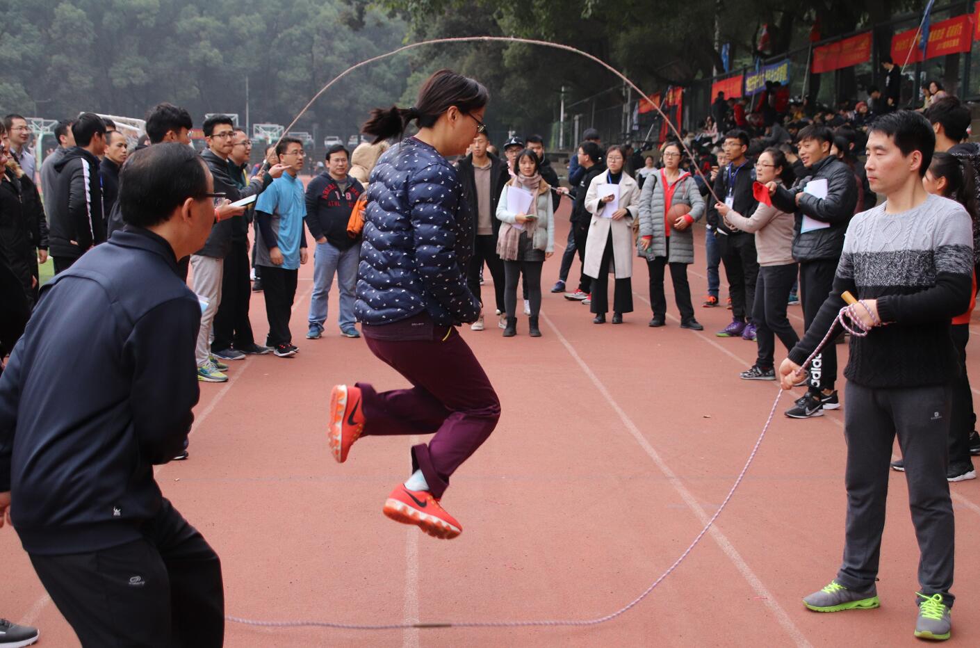 开幕式结束后,教工组比赛随即展开。当三尺讲台换成绿茵赛场,老师们一改课堂上的严肃内敛,脸上洋溢着喜悦,精神饱满、积极投入到拔河、跳绳、滚铁环、掷垒球等九个比赛项目中。学生们也在一旁为老师助威加油,欢声笑语此起彼伏、融成一片。
