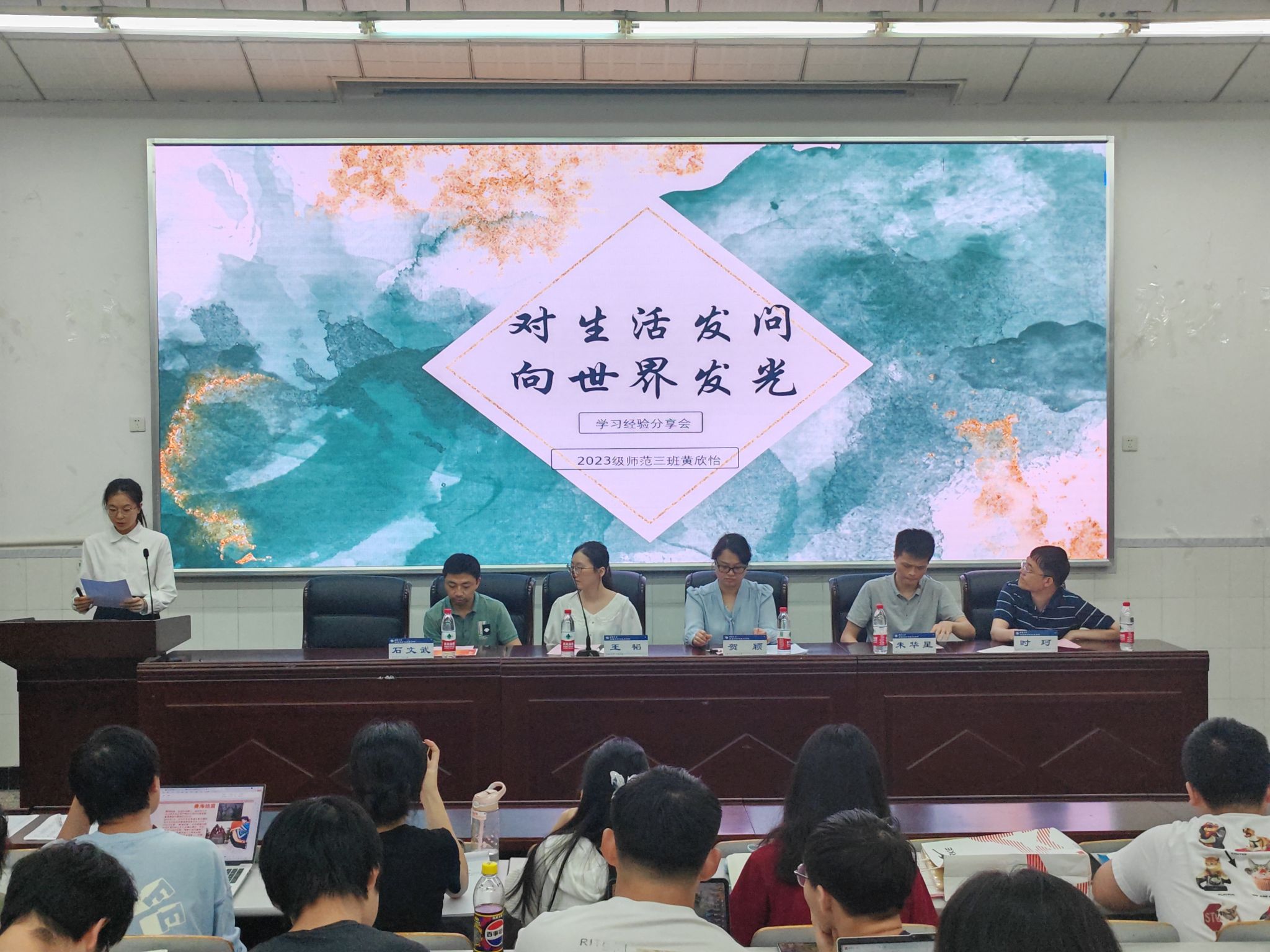 师范三班黄欣怡同学以对生活发问,向世界发光为主题,介绍了自己观察生活、勇于实践的学习方法。在课程学习方法方面,她将自己的心得归纳为三点,即带着思考去预习,带着问题去听课,带着逻辑去梳理。她强调将被动学习转化为主动学习的关键在于多思考,多提问,多交流,最后她号召学有余力的同学们参加学业帮扶备课活动、科普志愿讲解活动,充分实现自我价值。