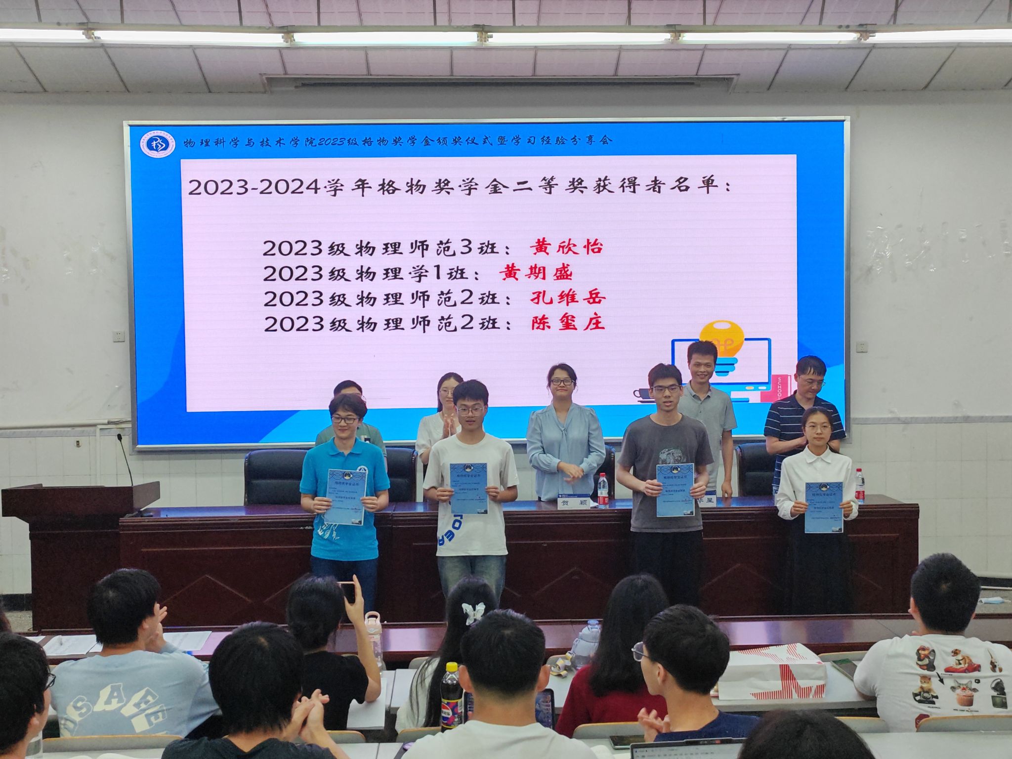 为进一步加强学风建设,鼓励学生刻苦学习,全面发展,522日下午17:00,51风流 在大阶梯教室举办2023格物奖学金颁奖仪式暨学习经验分享会。2023级辅导员贺颖,班主任时珂、王韬、朱华星、石文武和245名大一同学参加颁奖仪式,仪式由2023级黄梓恒和陈玺庄同学主持。