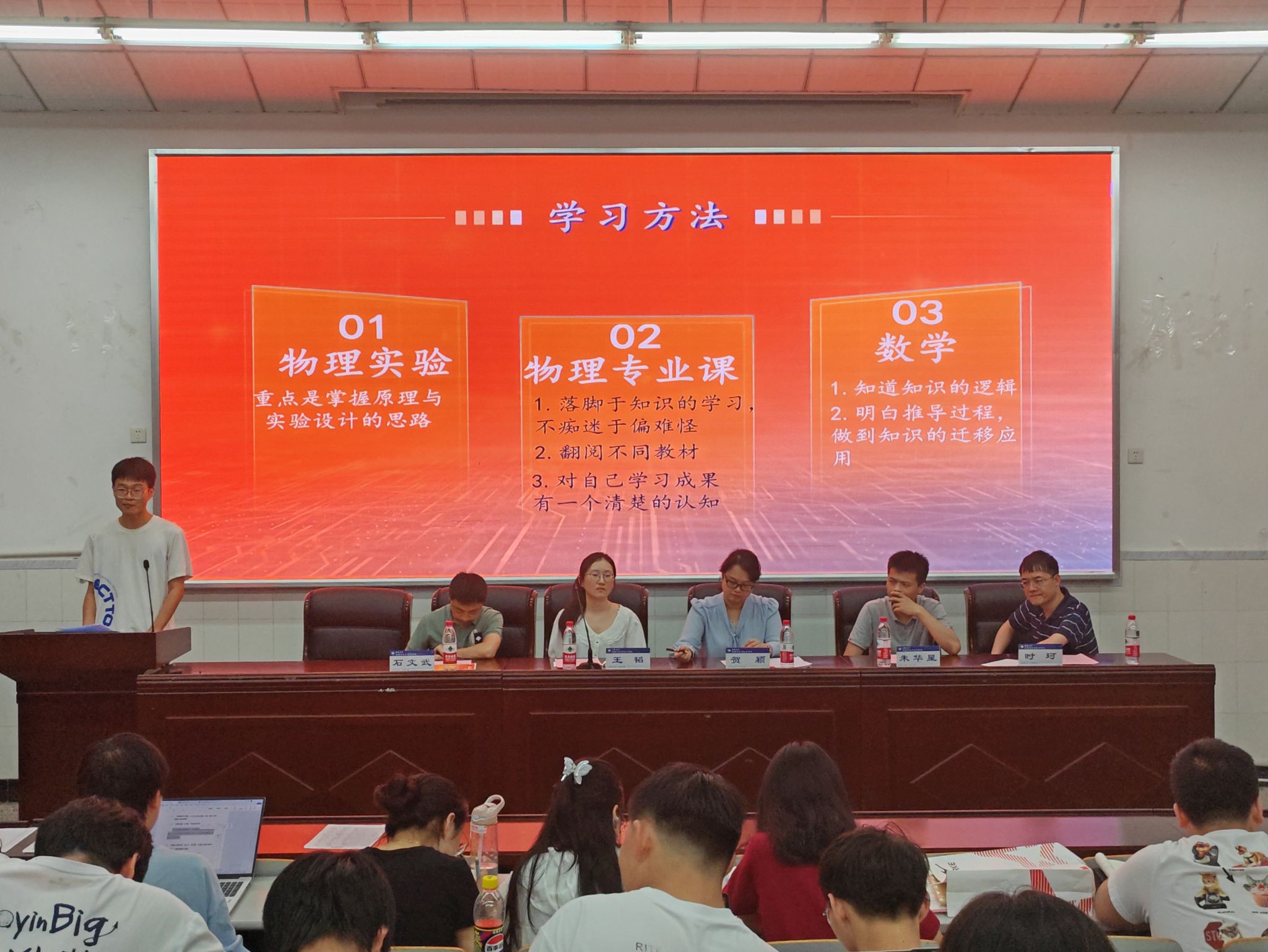 物理学一班黄期盛同学围绕“物理!悟理”这个话题分享了课前认真预习、课中听懂知识点与例题、课后作业中学习解题思路三个阶段的学习方法,他强调了本学期核心课程的学习侧重点:高数科目的学习要重视公式;电磁学要注重理解基础上的记忆;线性代数要注意新概念。