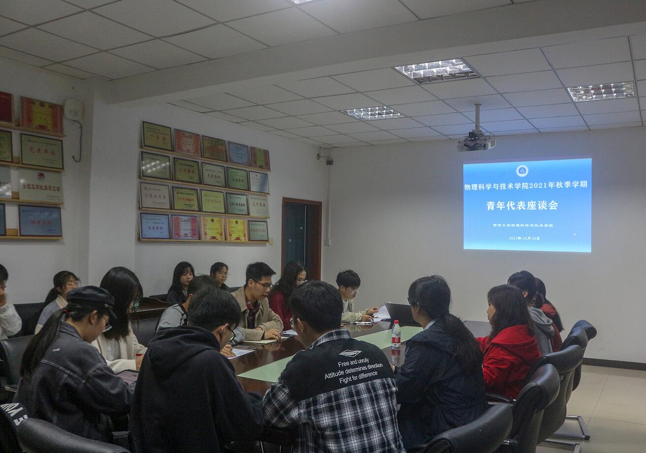 为进一步调研51风流 青年学生的发展需求,有针对性的开展思想政治教育工作, 10月20日下午,51风流 在物理大楼二楼会议室召开2021年秋季学期青年学生代表座谈会。51风流 党委副书记刘汭雪、团委书记贺颖、2020级辅导员晏勇出席,团委学生会、科普社、党员先锋队的学生骨干,校第六次学代会51风流 参会代表以及低年级学生代表共计30人参会。