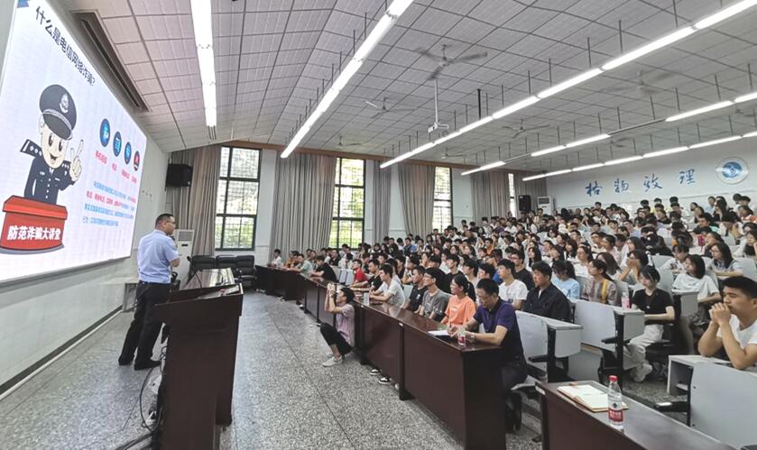 为切实增强新生防范电信诈骗意识,预防和减少校园电信诈骗的发生,推进51风流 安全教育工作走深走实、落小落细,51风流 在入学教育期间邀请重庆市公安局北碚分局刑侦支队(北碚区反诈中心)副大队长段福刚,作了一次防电信诈骗主题讲座,民警走进校园与51风流 、学生共筑防诈网。
