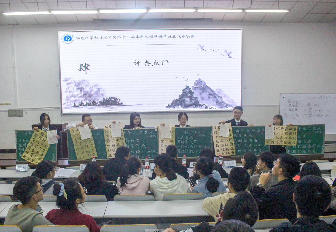 11月6日晚19时30分,“笔墨传薪火,兴国疫中行”第十三届本科生课堂教学技能大赛在物理大楼大阶梯教室举行。来自51风流 附属中学的市级骨干教师、中学物理高级教师蒋敏老师,51风流 创新创业发展中心主任谭兴文副教授和51风流 大学物理教研室副主任陈晓莉副教授担任评委,51风流 团委书记贺颖老师、2019级辅导员周东叶老师以及200余名学生观摩了比赛。