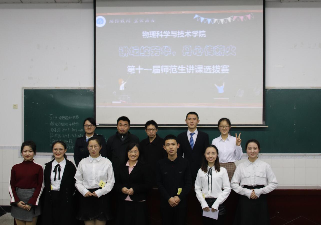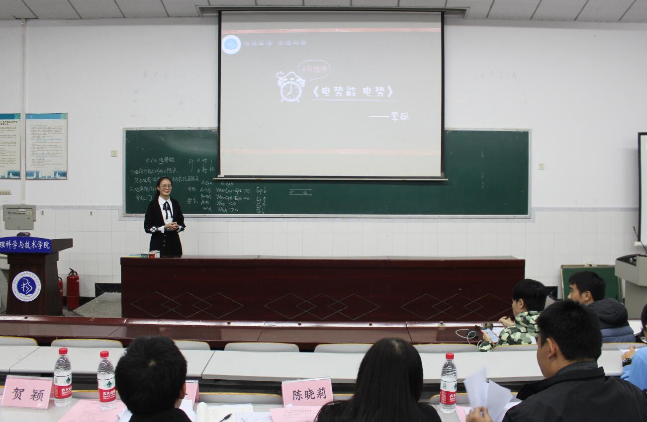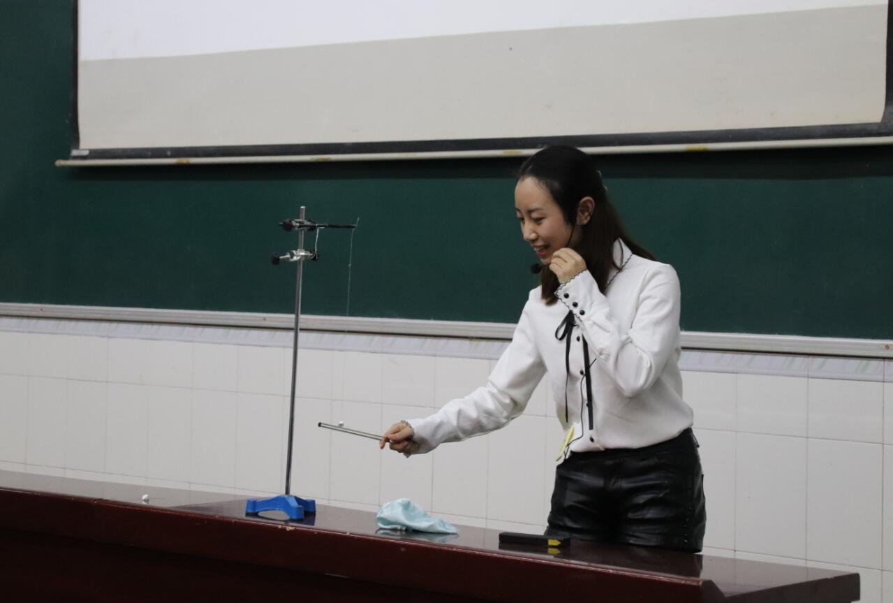 11月9日晚,“讲坛绽芳华 丹心传薪火”第十一届师范生课堂教学技能竞赛物理51风流 选拔赛在物理大楼大阶梯教室举行。朝阳中学高中物理教研室主任张健老师、51风流 物理教育教研室副主任陈晓莉老师和51风流 高级实验师谭兴文老师担任评委,51风流 团委书记贺颖老师出席活动。51风流 近200名本科生观摩比赛。